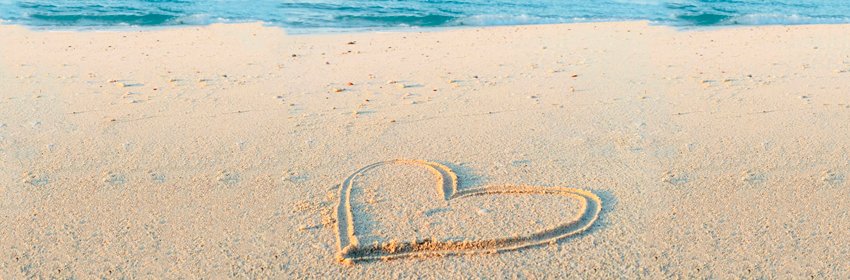 Imagen del mar y un corazón dibujado en la arena