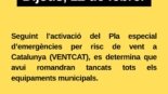Following the activation of the special emergency plan for the risk of wind in Catalonia (VENTCAT), it is determined that all municipal facilities will remain closed today.