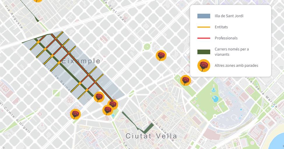Por eso, te dejamos una guía completa de la Supermanzana en Barcelona, ​​con sus calles cortadas, y lugares (tanto en la supermanzana como en los barrios) donde puedes encontrar puestos de libros y rosas.