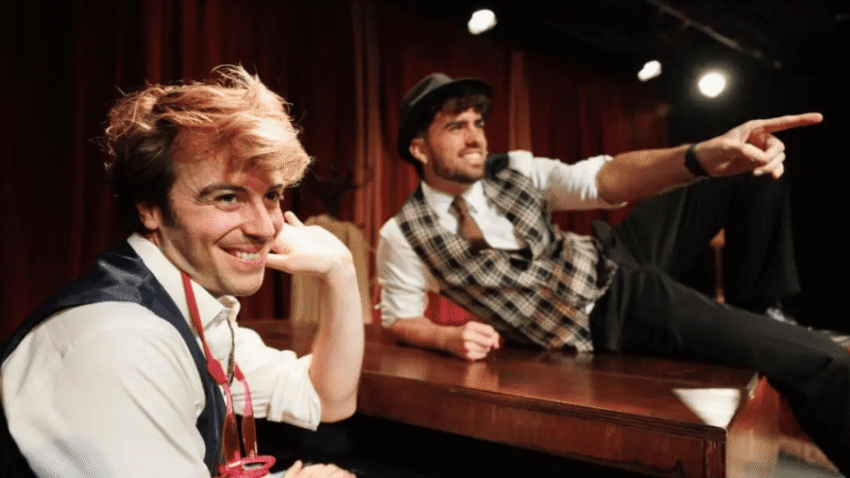 After a resounding success at the Gran Via in Madrid and after two seasons of good reviews, it arrives at the Teatre Muntaner Murder for twoperformed by Didac Flores i Mikel Herzog Jr. It is a humorous musical created by the Americans Kellen Blair i Joe Kinosianwhich premiered in Chicago in 2011 and on the scene off-Broadway in 2013. It is a fun and innovative show that has achieved a lot of relevance on an international scale. This new production, which arrives in Barcelona this December, has been adapted and directed by Zenon Recalde (The Lion King) and also with the musical direction of Gaby Goldman (Matilda, Billy Elliot i West Side Story).