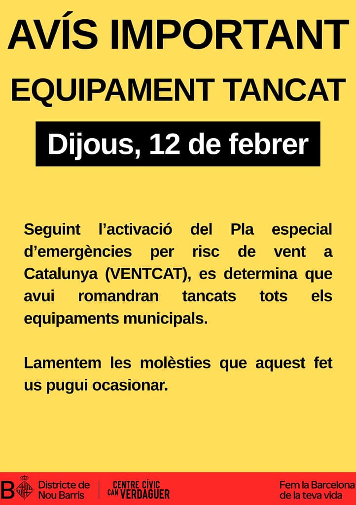 Important Notice Created 11/02/2026 Reading time Less 1 min Categories: Culture, Traditional & Popular the entrance Important Notice appeared first on Can Verdaguer Civic Centre. Source link