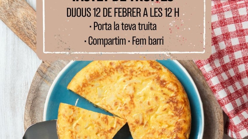 El jueves 12 de febrero a las 12 hte esperamos en el Espacio de Encuentro del Casal de Barrio Cardener: lleva tu tortilla, preferiblemente casera, compártela con los vecinos y vecinas participantes, descubre nuevas recetas, secretos culinarios y hacemos barrio juntas.