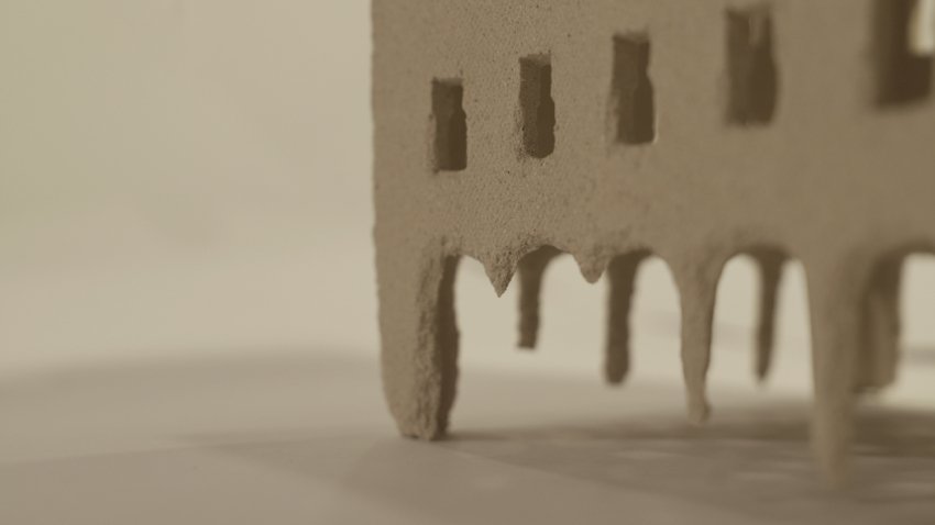 La instalación forma parte de un proyecto fílmico ya iniciado por el artista sobre El Arca de Noésuite para piano del compositor Xavier Montsalvatge. Una pieza en la que la música activa ficciones y la mirada aísla relatos sobre perplejidad e incomunicación en el paisaje urbano de una ciudad flotante. La muestra se convierte en un ensayo de reinterpretación narrativa de plena vigencia: el post diluvio se transforma en la narración del aislamiento que hemos oído a raíz de la pandemia de la Covid-19 y el confinamiento.
