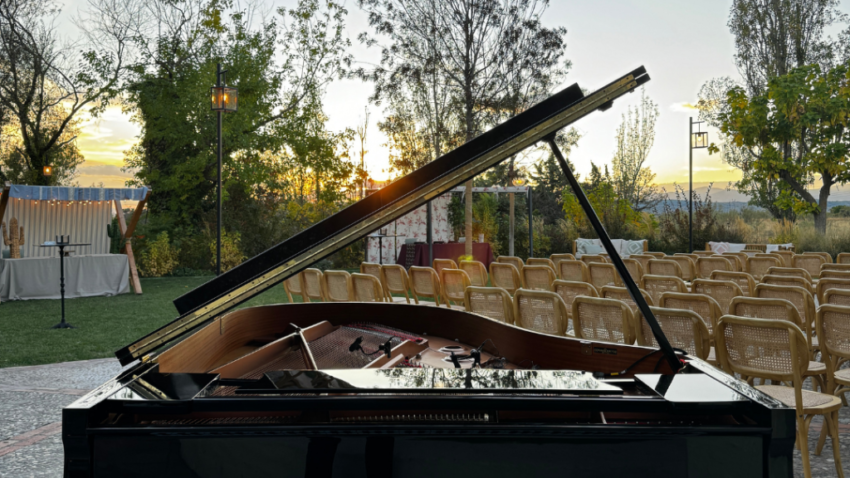 Uno de los eventos más especiales en los que hemos tocado fue en plena naturaleza: un paisaje espectacular, aire puro, un entorno de ensueño. Y la música no podía ser cualquiera: uno piano de cola colocado estratégicamente, con notas suaves y pausadas que se fundían con el viento.