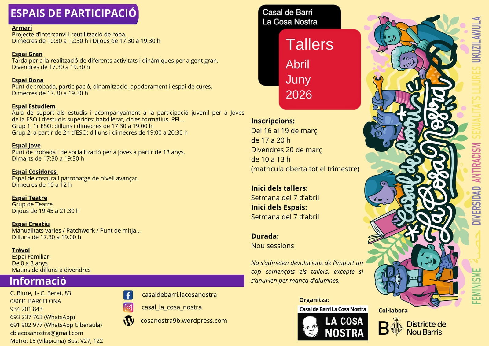 The local event plannerFrom Barcelona with Love 4 años de comunidad: ¡Ven y suma a Can Carol! 4 años de comunidad: ¡Ven y suma a Can Carol! • 07/03/2026 • Sports & Outdoors Impulsamos las competencias digitales para mejorar la empleabilidad Impulsamos las competencias digitales para mejorar la empleabilidad • 07/03/2026 • Sports & Outdoors YKIDS potencia el desarrollo de 103 menores en situación de vulnerabilidad YKIDS potencia el desarrollo de 103 menores en situación de vulnerabilidad • 07/03/2026 • Sports & Outdoors Descubrir, de Jefta van Dinther | Actividad Descubrir, de Jefta van Dinther | Actividad • 07/03/2026 • Art Participamos en la jornada sobre violencia machista y salud mental en el Parque Sanitario Sant Joan de Déu Participamos en la jornada sobre violencia machista y salud mental en el Parque Sanitario Sant Joan de Déu • 07/03/2026 • Traditional & Popular 30 años de la declaración de BCIN de la ciudad romana de Baetulo – Museu de Badalona 30 años de la declaración de BCIN de la ciudad romana de Baetulo – Museu de Badalona • 07/03/2026 • Art La Universidad Masaryk de Brno celebra 10 años del Grado de Estudios Catalanes – Actualitat La Universidad Masaryk de Brno celebra 10 años del Grado de Estudios Catalanes – Actualitat • 07/03/2026 • Art AQuAS presenta nuevas herramientas para identificar buenas prácticas en salud y mejorar la calidad del sistema AQuAS presenta nuevas herramientas para identificar buenas prácticas en salud y mejorar la calidad del sistema • 07/03/2026 • Sports & Outdoors La Dra. Anna Sans en el Podcast “Sobrevivir a la crianza” – SOMOS VÍA La Dra. Anna Sans en el Podcast “Sobrevivir a la crianza” – SOMOS VÍA • 07/03/2026 • Sports & Outdoors Una jornada de convivencia en el Encuentro de familias de otoño Una jornada de convivencia en el Encuentro de familias de otoño • 07/03/2026 • Sports & Outdoors 79 municipios de Cataluña se iluminan de rojo por el Día Mundial del Corazón 79 municipios de Cataluña se iluminan de rojo por el Día Mundial del Corazón • 07/03/2026 • Sports & Outdoors TALLERES ABRIL – JUNIO 2026 – Casal de Barrio La Cosa Nostra TALLERES ABRIL – JUNIO 2026 – Casal de Barrio La Cosa Nostra • 07/03/2026 • Culture Blogs Categories Arts Concerts Culture Electronic Music Festivals & Fiestas Gastronomy Movies & Cinemas Music & Dance NightLife Shows & Theaters Sports & Outdoors Traditional & Popular EVENTS Categories Arts Concerts Culture Electronic Music Festivals & Fiestas Gastronomy Movies & Cinemas Music & Dance NightLife Shows & Theaters Sports & Outdoors Traditional & Popular Follow us on Facebook Instagram X-twitter