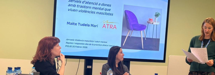 El pasado 20 de febrero, el Auditorio del Parque Sanitario San Juan de Dios (PSSJD) en Sant Boi de Llobregat acogió la jornada “Violencia machista y salud mental: retos y respuestas desde la práctica clínica y social”. El evento, dirigido al personal asistencial, contó con la participación de Maite Tudela Marí, en representación de Grup ATRA, dentro de la mesa redonda centrada en el abordaje clínico y social de esta realidad.
