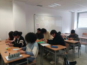 Además, en GES 1la semana de Sant Jordi sirvió para trabajar la geometría a matemáticas a través de la papiroflexiacreando flores muy diversas y coloreadas.