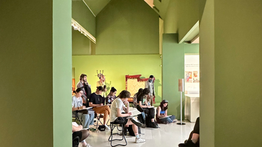 El trabajo se realizará a partir del collage, utilizando detalles de obras expuestas en el museo, que se combinarán libremente para construir una imagen con significado propio. Como último paso, los participantes podrán intervenir el cartel con técnicas pictóricas como la témpera o las ceras, dándole un toque personal y expresivo.