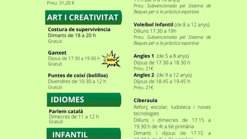 Peeeeeero… antes del “parón” de verano… Os compartimos la programación de los talleres del último trimestre del año (primero del nuevo curso 25-26 ☺️)