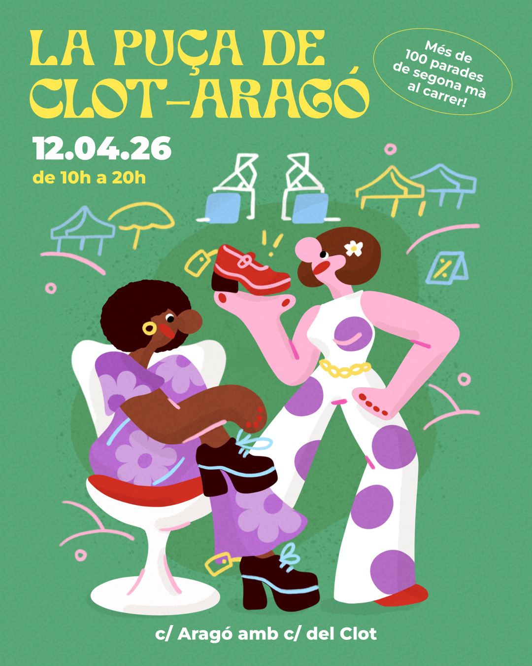 If you are thinking that now that the cold is over you could sell that furry leopard coat that you no longer wear, or you could buy a leather jacket for these half-time days, we know where! La Puça del Clot is your market, the largest open-air market on the street. It will be the April 12 from 10 a.m. to 7 p.m. in c/ Aragó amb c/ del Clot.