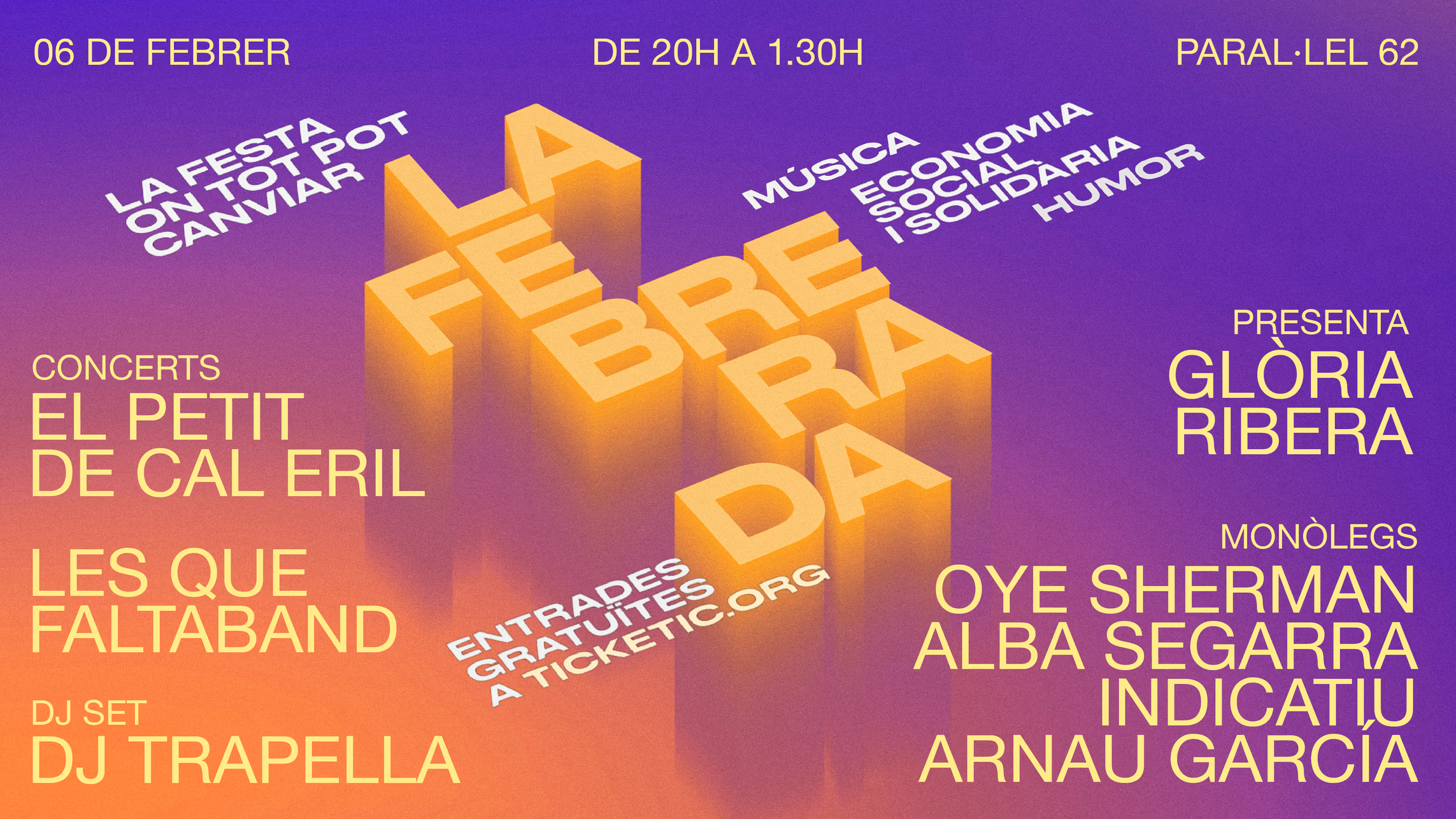 The same Friday from 8 p.m, Parallel 62 will become the epicenter of humor, music and the social and solidarity economy with La Febrerada, a party that is more than a party. The star and singer Gloria Ribera she will be the master of ceremonies for a night in which there will be no shortage of laughter, truths and music.