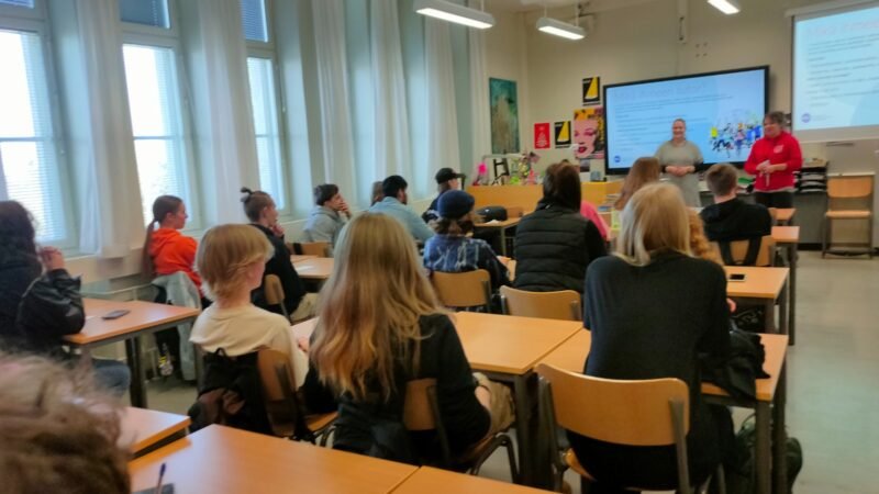 La primera clase a la que asistimos fue la del curso TUVA que prepara al alumnado recién llegado para poder incorporarse al sistema educativo finlandés. Durante un curso cursan un itinerario personalizado donde dan las clases de las diferentes asignaturas adaptadas a su nivel de lengua.