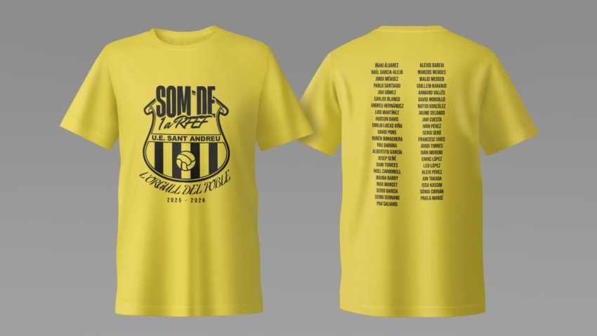 La UE Sant Andreu pone a la venta la camiseta conmemorativa del ascenso a Primera RFEF.