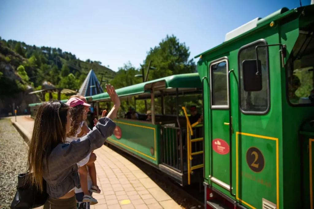 El Tren Panorámico es una versió más moderna. Tiene grandes ventanales, climatización, espacios accesibles y hasta enchufes para cargar el móvil, esta opción te permite descubrir las sierras del Monroig y el Montsec como si estuvieras dentro de un documental.